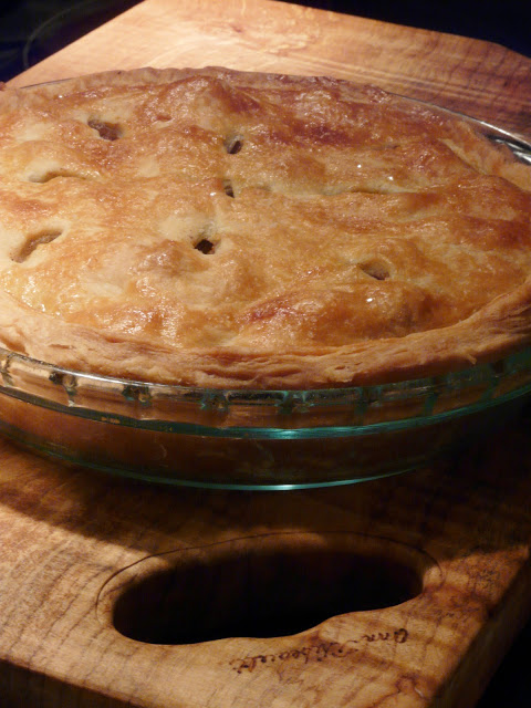 Hi Linda, I used my regular pastry crust. Good for both sweet and savory pies. Sometimes I use half butter/half lard, but in the above pie I used all butter in the crust. I love the flavour and the flakiness.I use a box grater to cut in the butter.Butter Lard Pastry Crust==================2 cups all purpose flour3/4 teaspoon salt1/3 cup butter1/3 cup lard (or shortening- Crisco)5 to 6 tablespoons of ice water, or more as needed(note: if using for a sweet pie, add 1 or 2 teaspoons of sugar.)Mix flour with salt, and cut in butter and lard.You can cut the butter/lard in using the food processor or with apastry blender.Or you can use a box grater for the butter.Put flour mixture in bowl and add water mixing with a fork until pastrycomes together. Form in to a ball and cut in two pieces. Form eachinto a round flat disc and refrigerate for 1 hour.NOTE: Can be made with all butterThe secret to a good crust is to not over-handle the dough.
