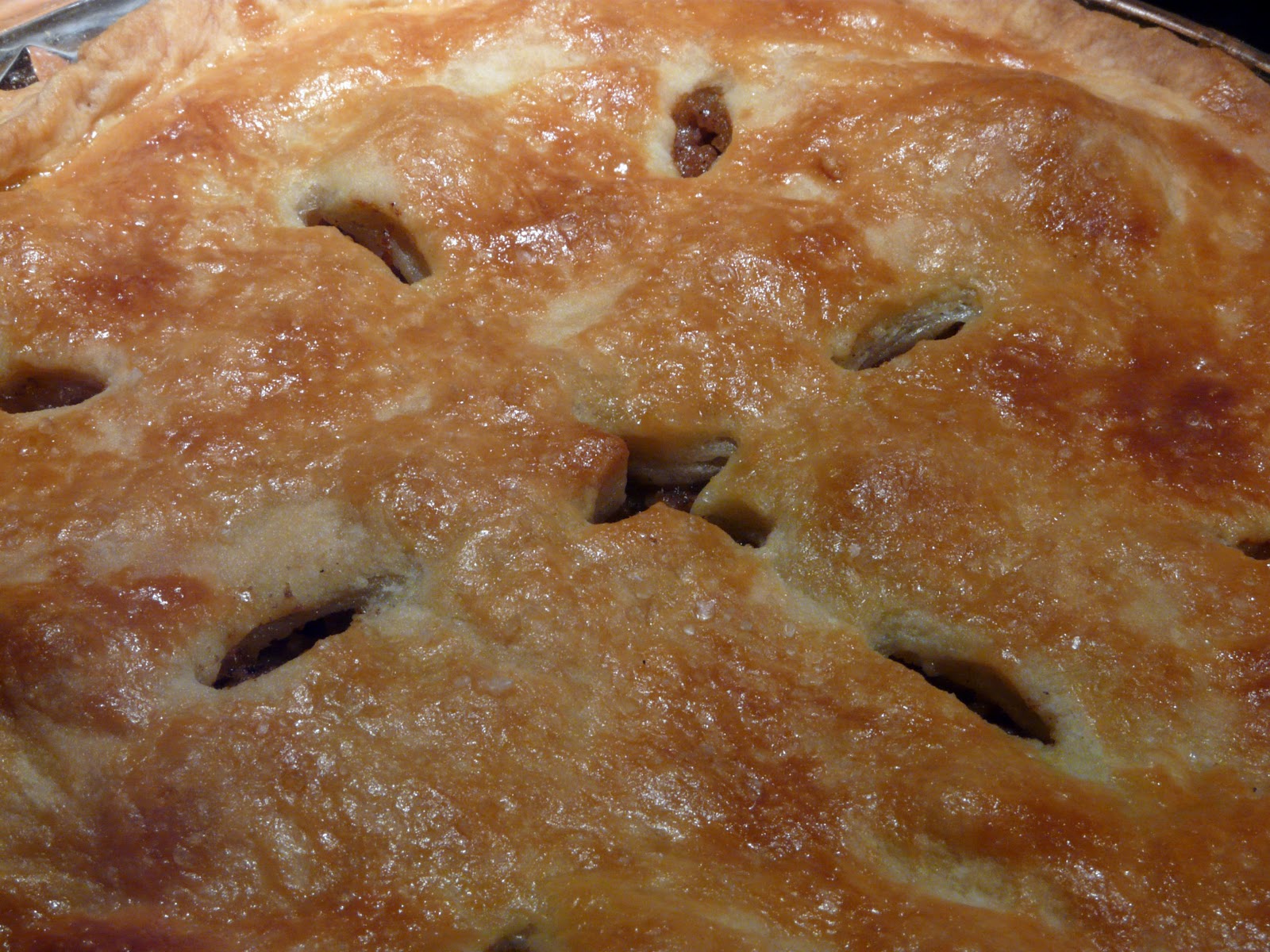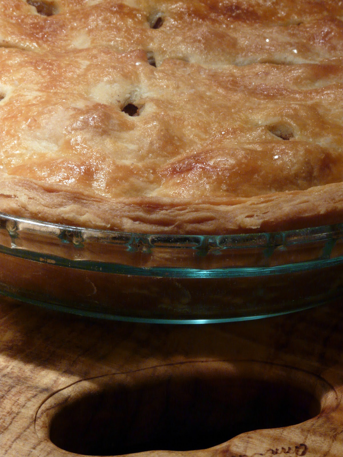 Hi Linda, I used my regular pastry crust. Good for both sweet and savory pies. Sometimes I use half butter/half lard, but in the above pie I used all butter in the crust. I love the flavour and the flakiness.I use a box grater to cut in the butter.Butter Lard Pastry Crust==================2 cups all purpose flour3/4 teaspoon salt1/3 cup butter1/3 cup lard (or shortening- Crisco)5 to 6 tablespoons of ice water, or more as needed(note: if using for a sweet pie, add 1 or 2 teaspoons of sugar.)Mix flour with salt, and cut in butter and lard.You can cut the butter/lard in using the food processor or with apastry blender.Or you can use a box grater for the butter.Put flour mixture in bowl and add water mixing with a fork until pastrycomes together. Form in to a ball and cut in two pieces. Form eachinto a round flat disc and refrigerate for 1 hour.NOTE: Can be made with all butterThe secret to a good crust is to not over-handle the dough.