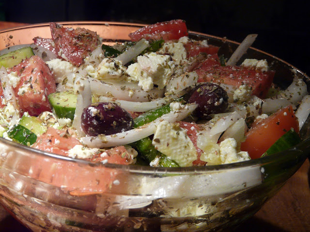 A Greek Salad is the easiest of salads to make. It is one of the few salads that I actually like.