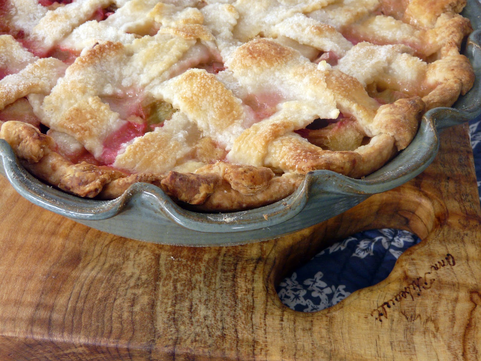 Rhubarb pie is THE harbinger of spring as far as my hubby is concerned. This one looks delicious and the pie plate is perfection.