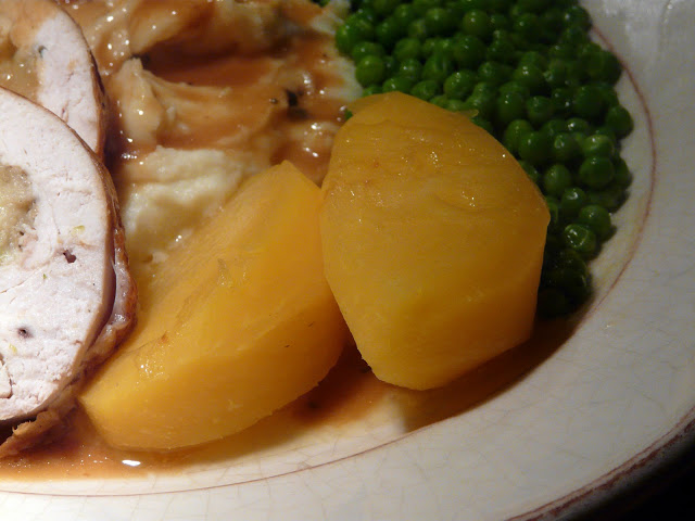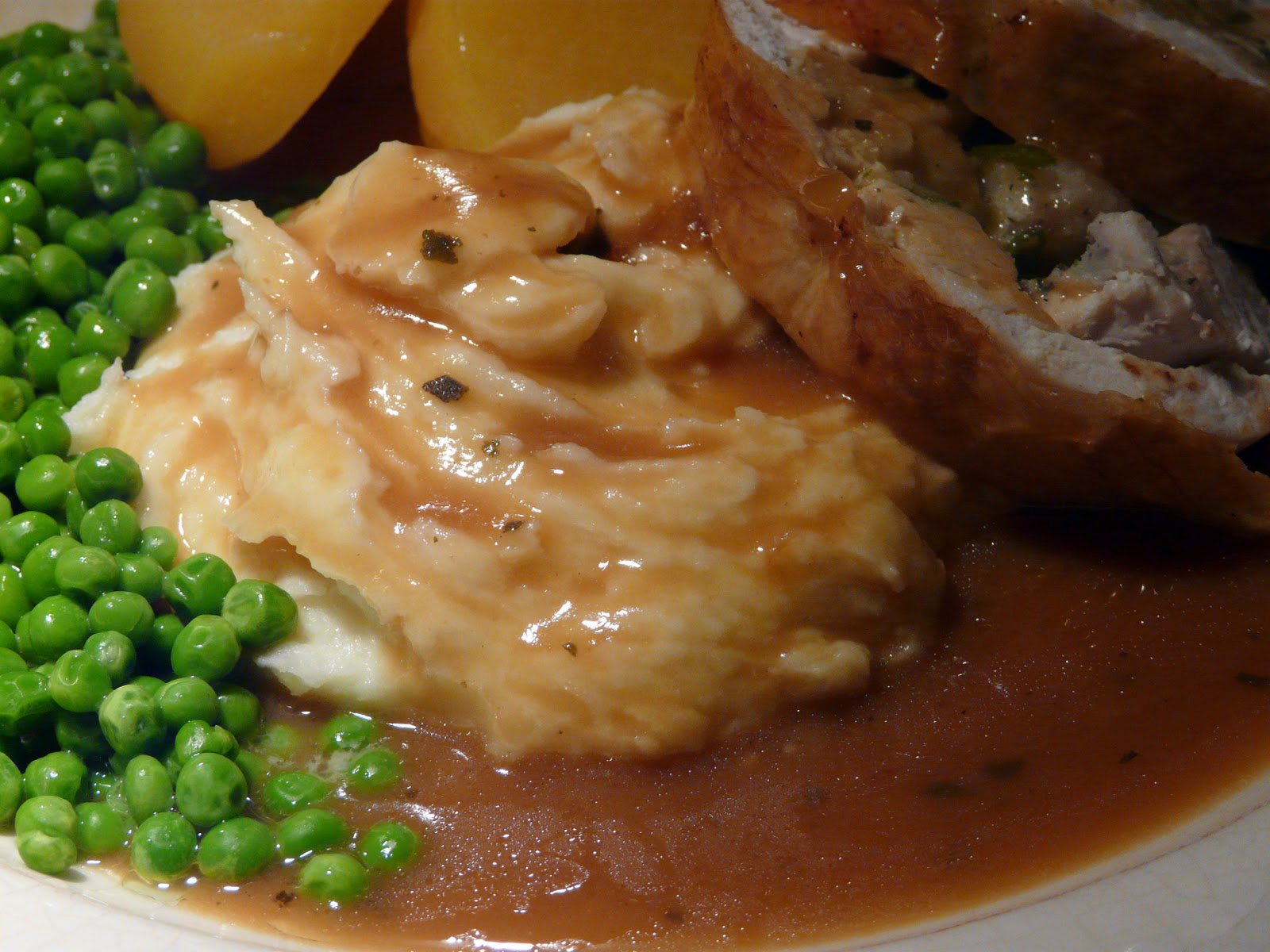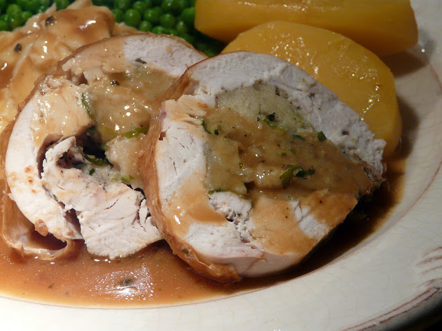 I boned out a whole (double) chicken breast and stuffed it with my regular sage bread stuffing.