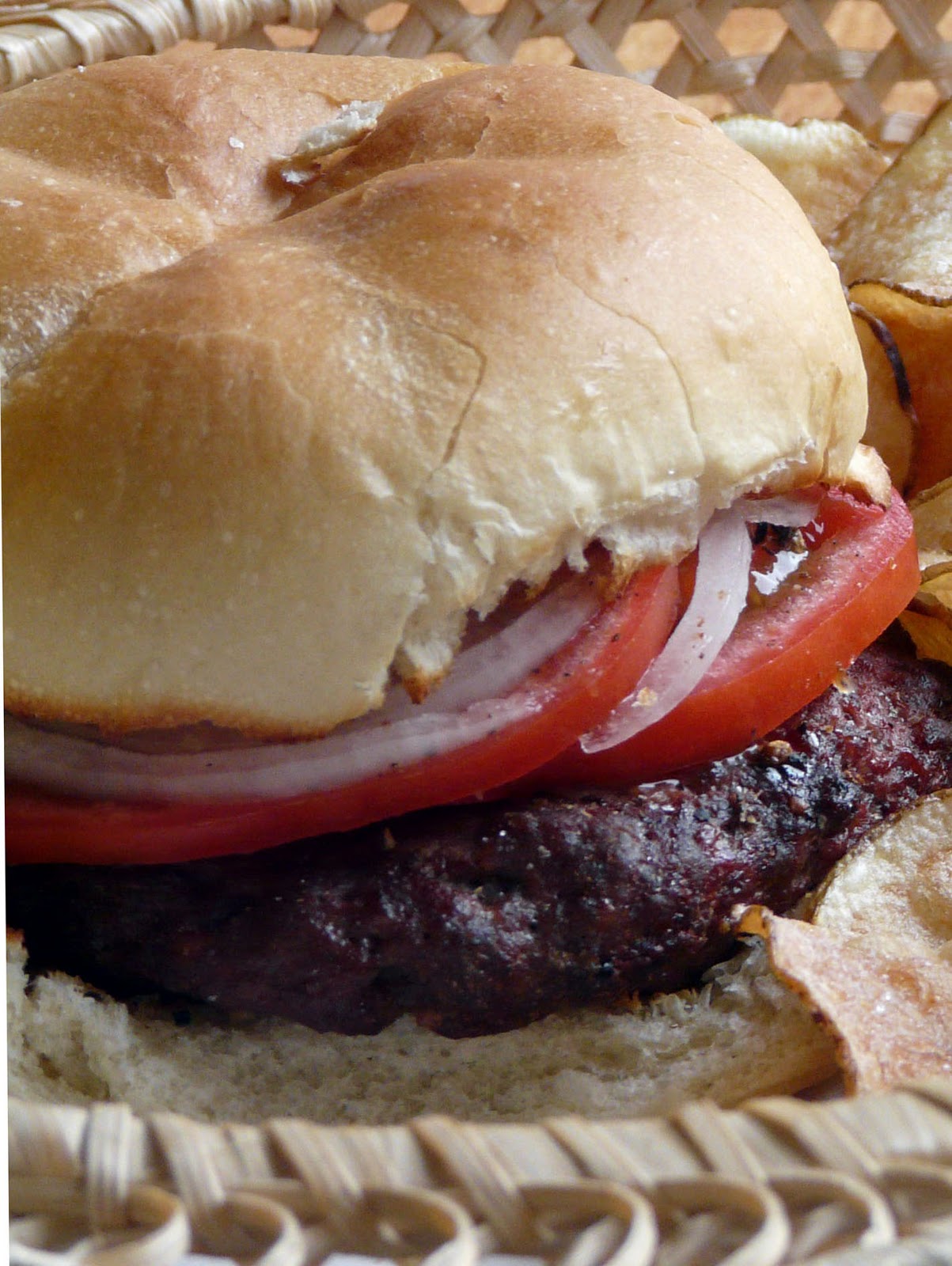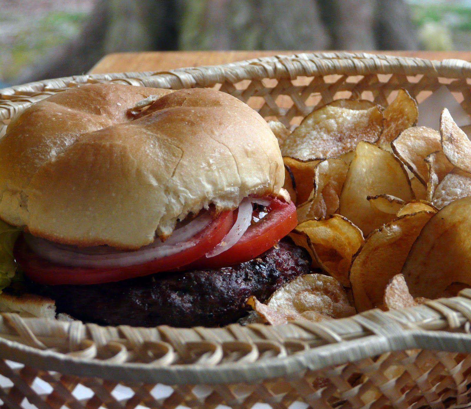Nothing better than a good grilled burger! My husband's favorites, kettle chips… we go to a sub shop that does their own and they are sooo good! I need to treat ourselves to homemade chips very soon!