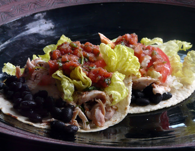 Mid afternoon, I pulled all the meat off of a roasted chicken and while the meat was still warm it was tossed with a little of the salsa for extra flavour.
