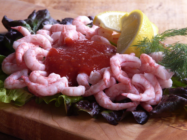 Moe was with me when I was buying the halibut and he put in a request for a Shrimp Cocktail. He loves these tender little handpicked baby shrimp.
