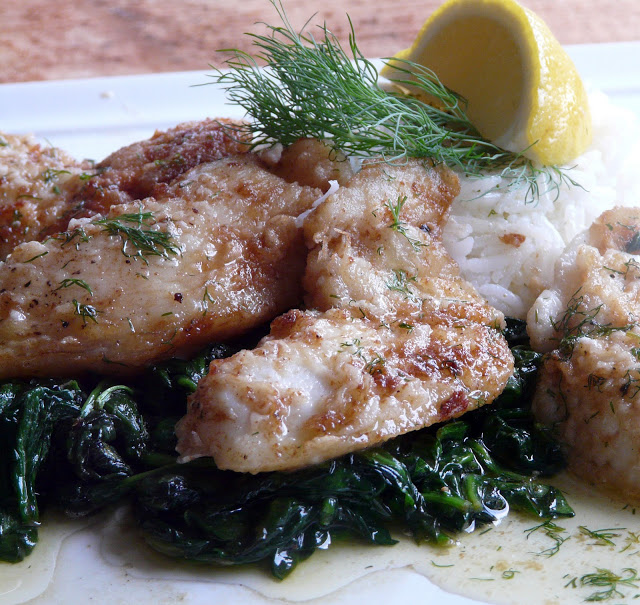 I dipped the cheeks into seasoned flour and quickly fried in a little olive oil and butter. Served them very simply with brown butter, lemon and fresh dill.