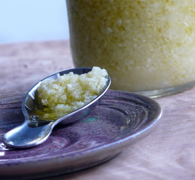 I first saw this preserved garlic on Monique’s delightful blog La Table De Nana.