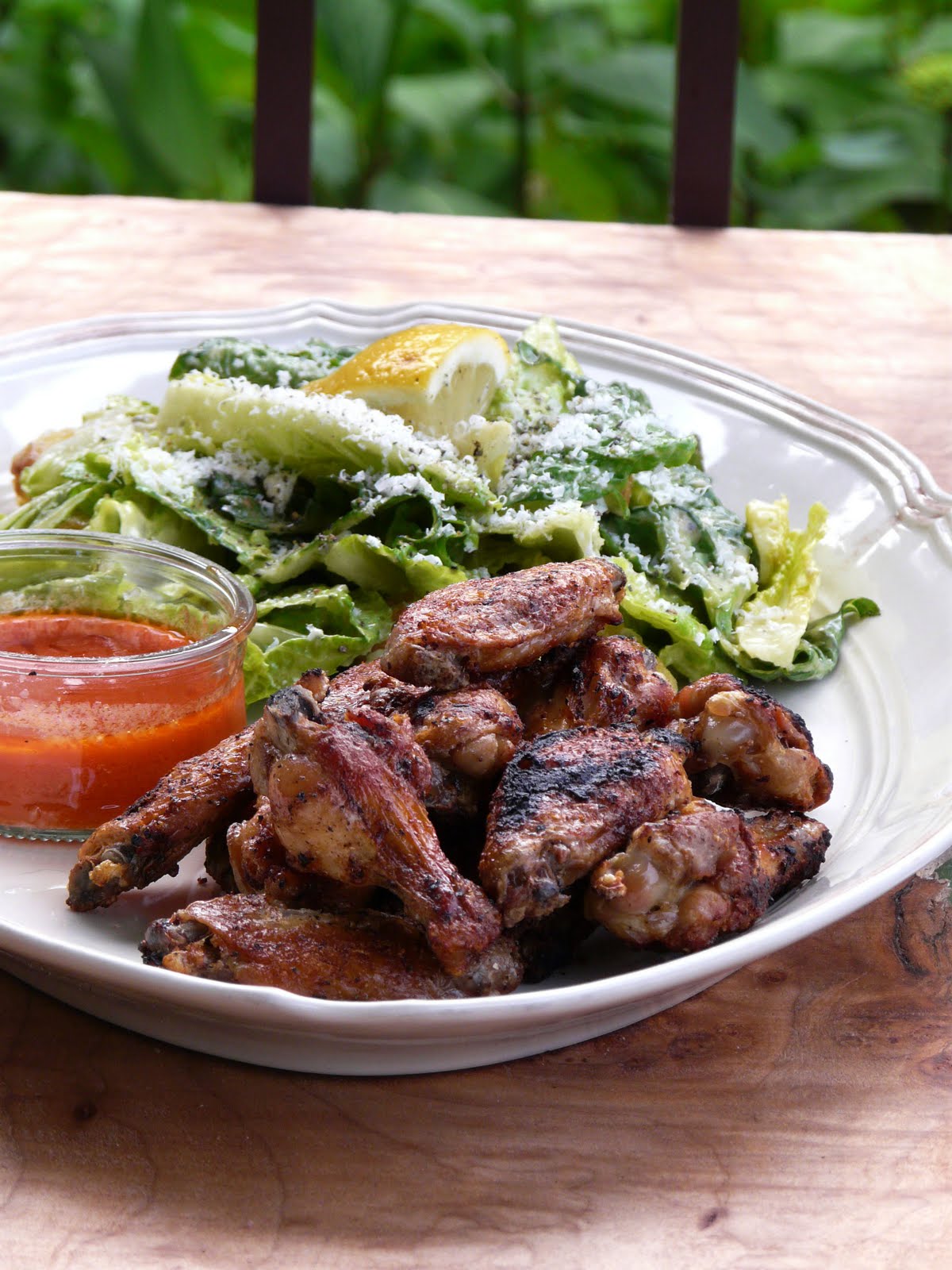 Wings and Caesar Salad Posted by thibeaultstable on July 1, 2011 I promised my poor salad-deprived husband a Caesar salad. What better side to serve with a Caesar than chicken wings finished off on the grill. PRINT CAESAR SALAD RECIPE Share this: Click to share on X (Opens in new window) X Click to share on Facebook (Opens in new window) Facebook Click to share on Pinterest (Opens in new window) Pinterest Like Loading... Related