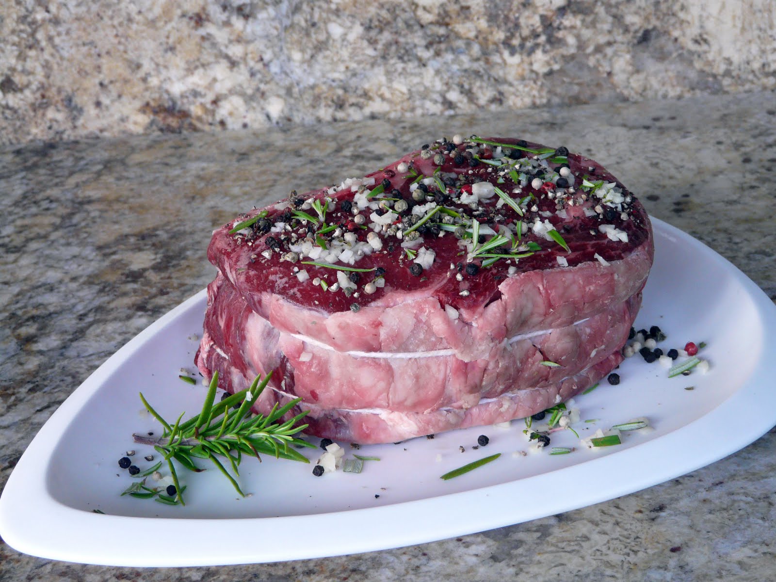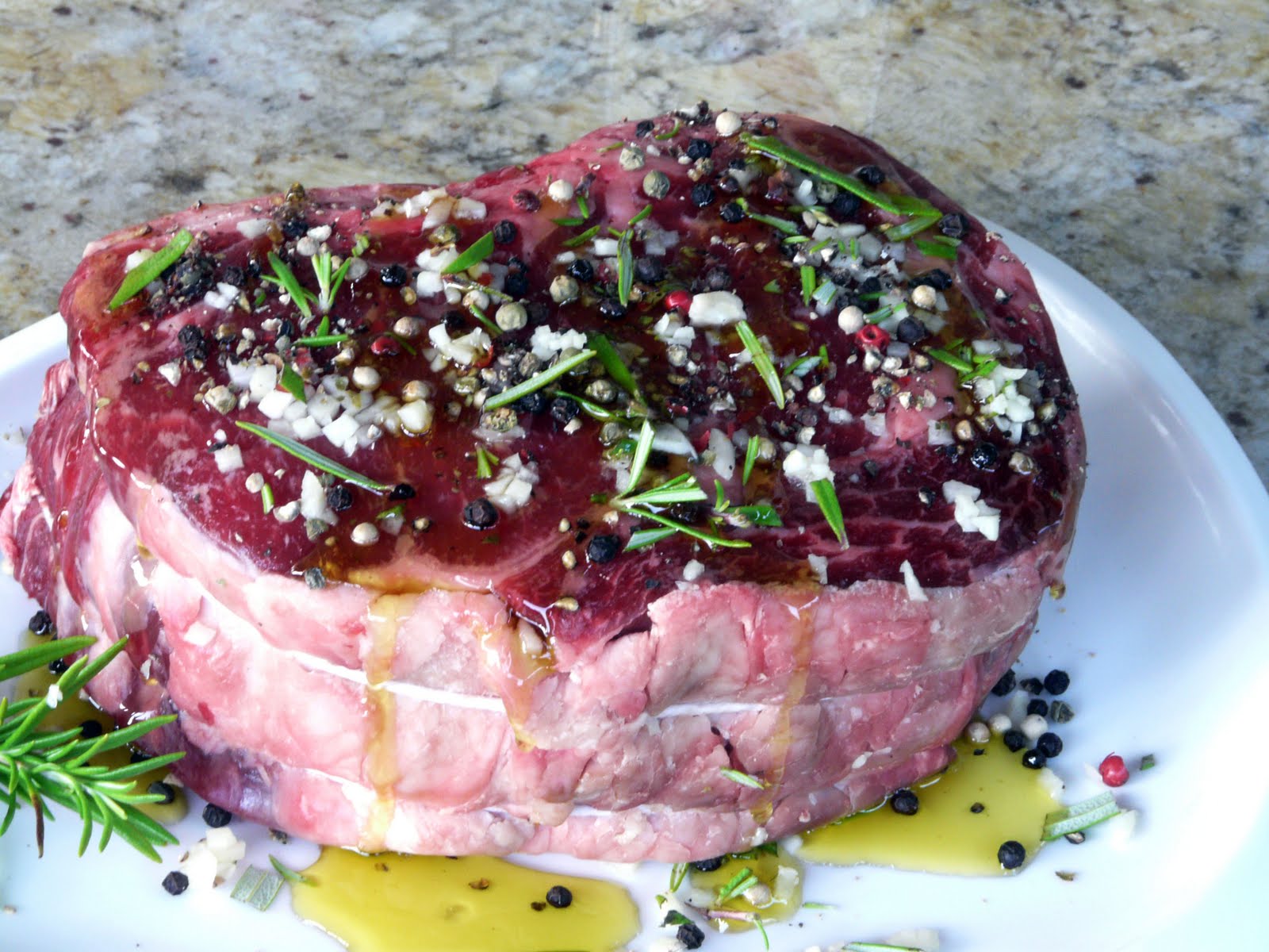 seasoned with lots of fresh garlic, mixed peppercorns, fresh rosemary and