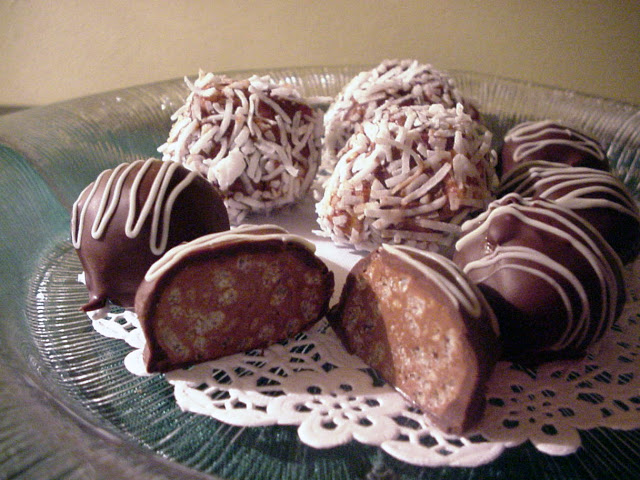 balls. Roll in coconut. Refrigerate. The longer the better. The