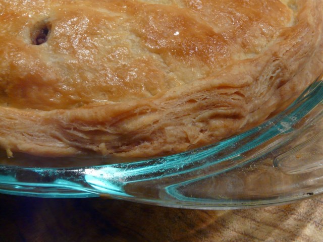 crimp edge. Brush with egg glaze and decorate with extra pastry if