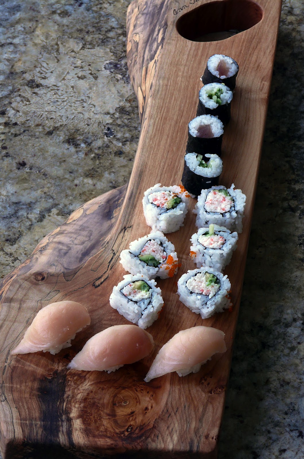 WOW! Love the board. Just perfect with that beautiful sushi!
