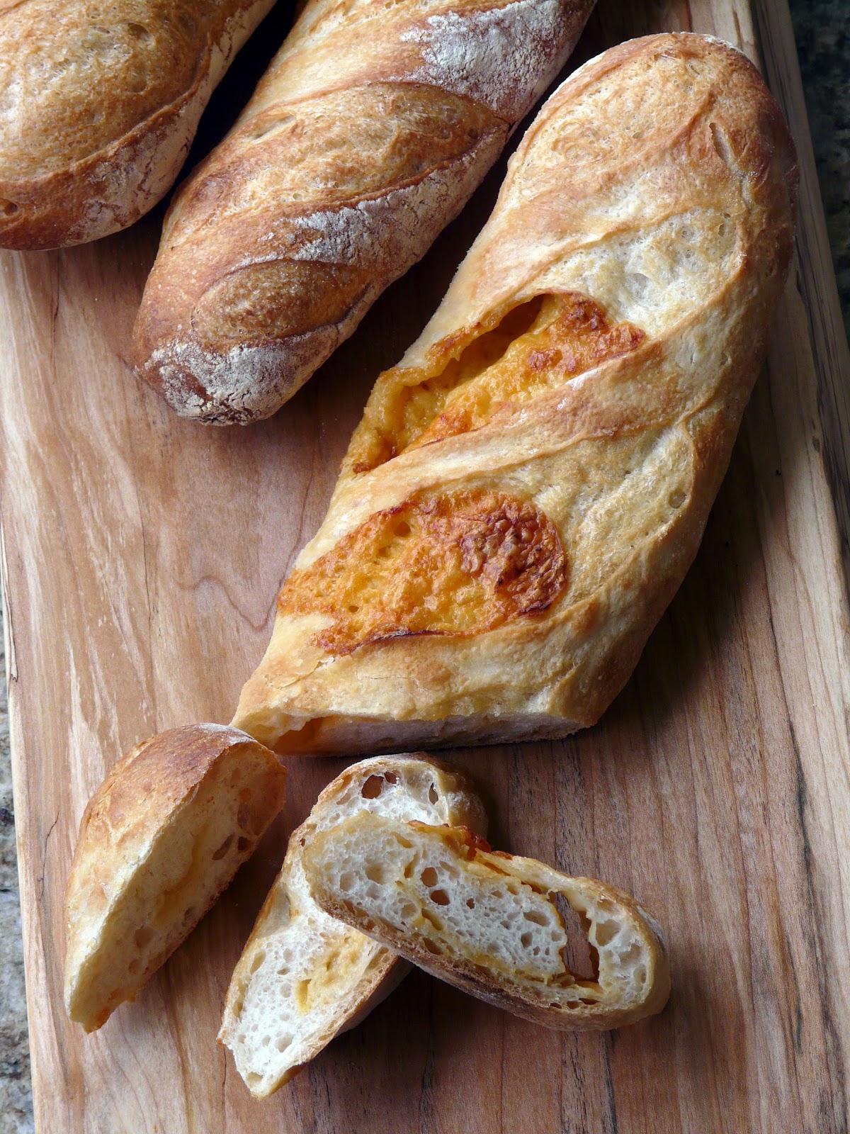 More Bread………. Posted by thibeaultstable on April 5, 2012 Using the remainder of yesterday’s dough, I baked more baguettes . Including one filled with Roasted Garlic and Cheddar. Share this: Click to share on X (Opens in new window) X Click to share on Facebook (Opens in new window) Facebook Click to share on Pinterest (Opens in new window) Pinterest Like Loading... Related