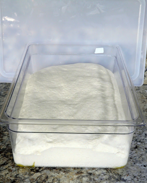 This dough makes for a wonderful pizza crust. Place dough in fridge and leave it for two to four, even five days. Take it out early (three hours) to give it time to come to room temperature. Allowing the dough to have a long cold fermentation really develops the flavour and the texture of the bread.