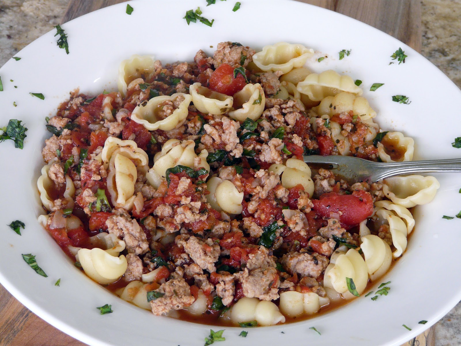 I like using shell shaped pasta as it picks up all the little pieces of meat.