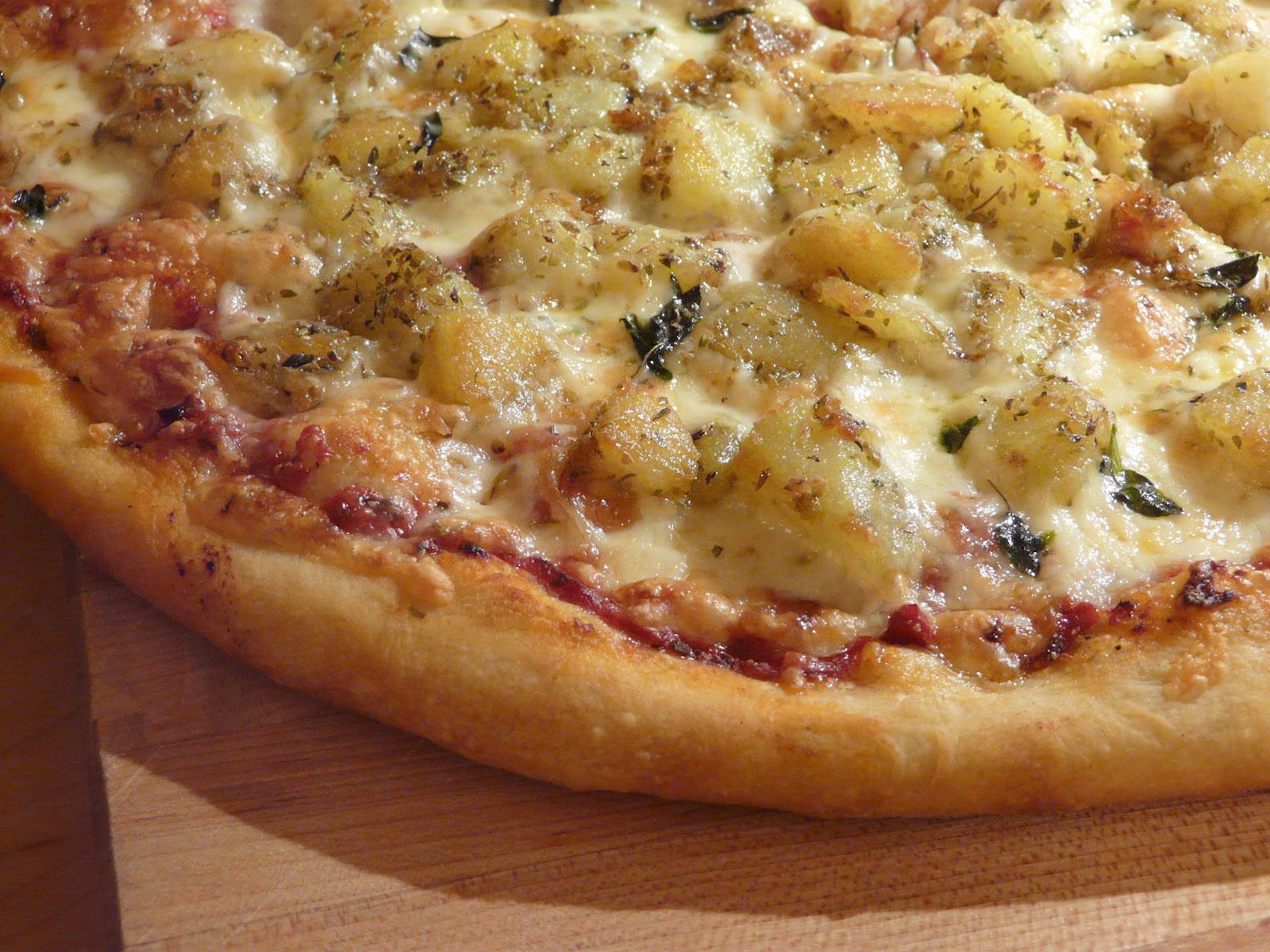 Completely understand how this is a favourite pizza — I made this a few days ago and it stunned us both – how wonderfully flavoured. The potatoes had this incredible fluffiness. I added some anchovy to sooth the anchovy lover, since they also go so well with potatoes, but I would have been happy with it either way. Thnx again!