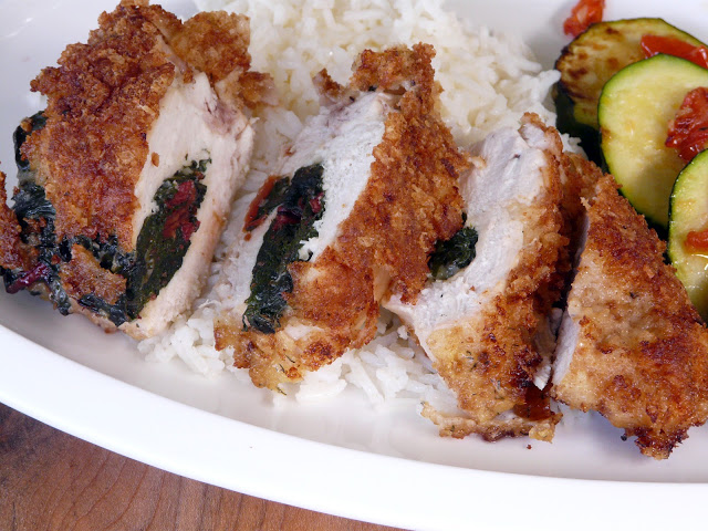 I love stuffing chicken breasts, but I don't think my coating has ever looked so wonderful and crispy! This is a must try recipe 🙂