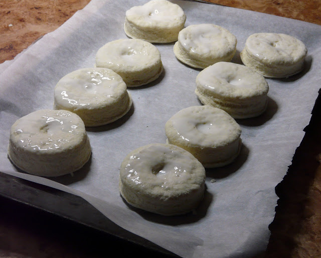 NOTE: If you like the tops to stay soft, dip the biscuits, top side down into melted butter.