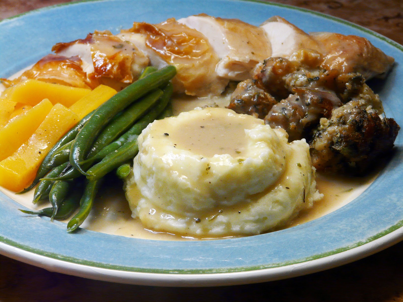 would never tire of this delicious meal with roast chicken and some tasty stuffing.