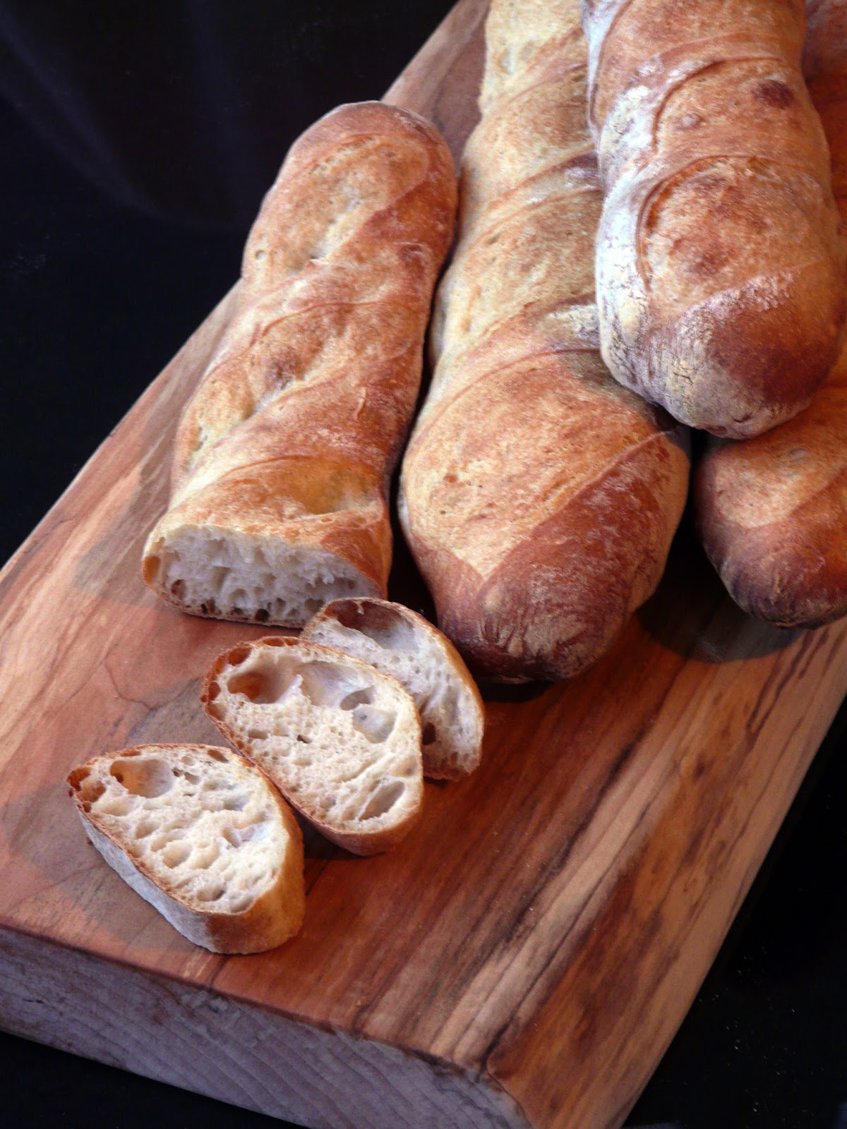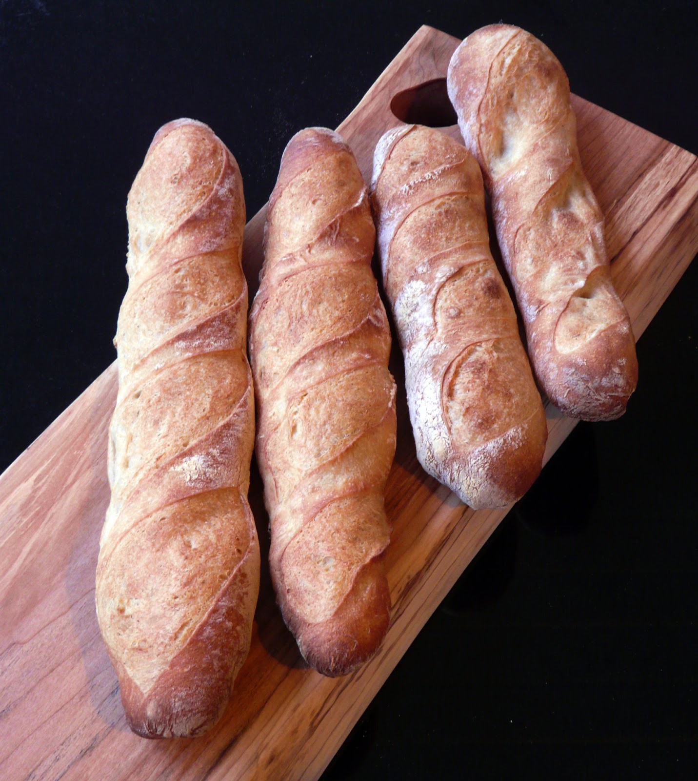 Divided the dough in half and baked four baguettes.