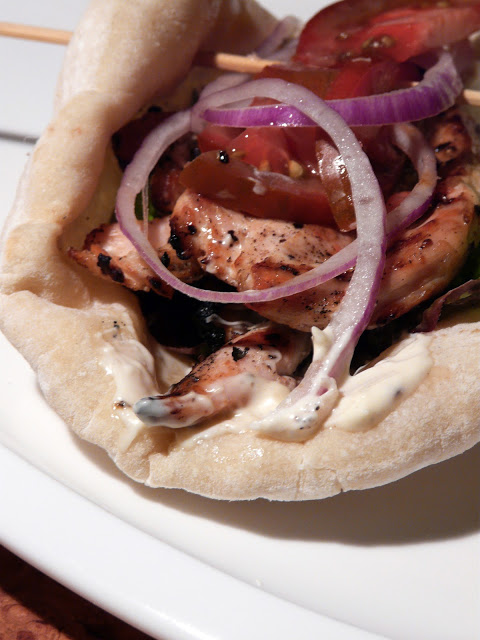 Chicken breasts were pounded flat, rubbed with garlic, salt and pepper and grilled.