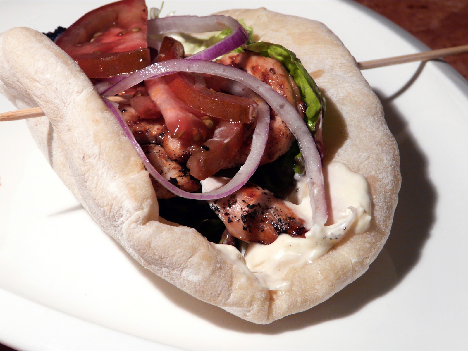 Chicken breasts were pounded flat, rubbed with garlic, salt and pepper and grilled.