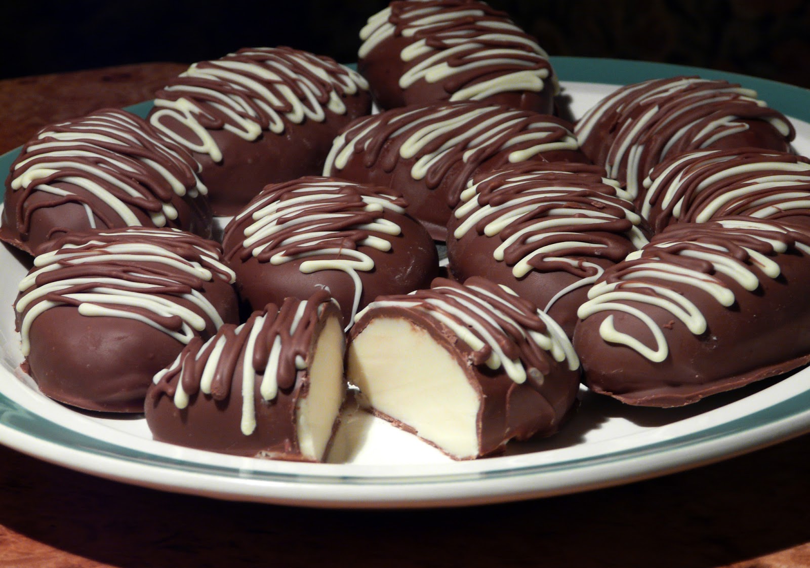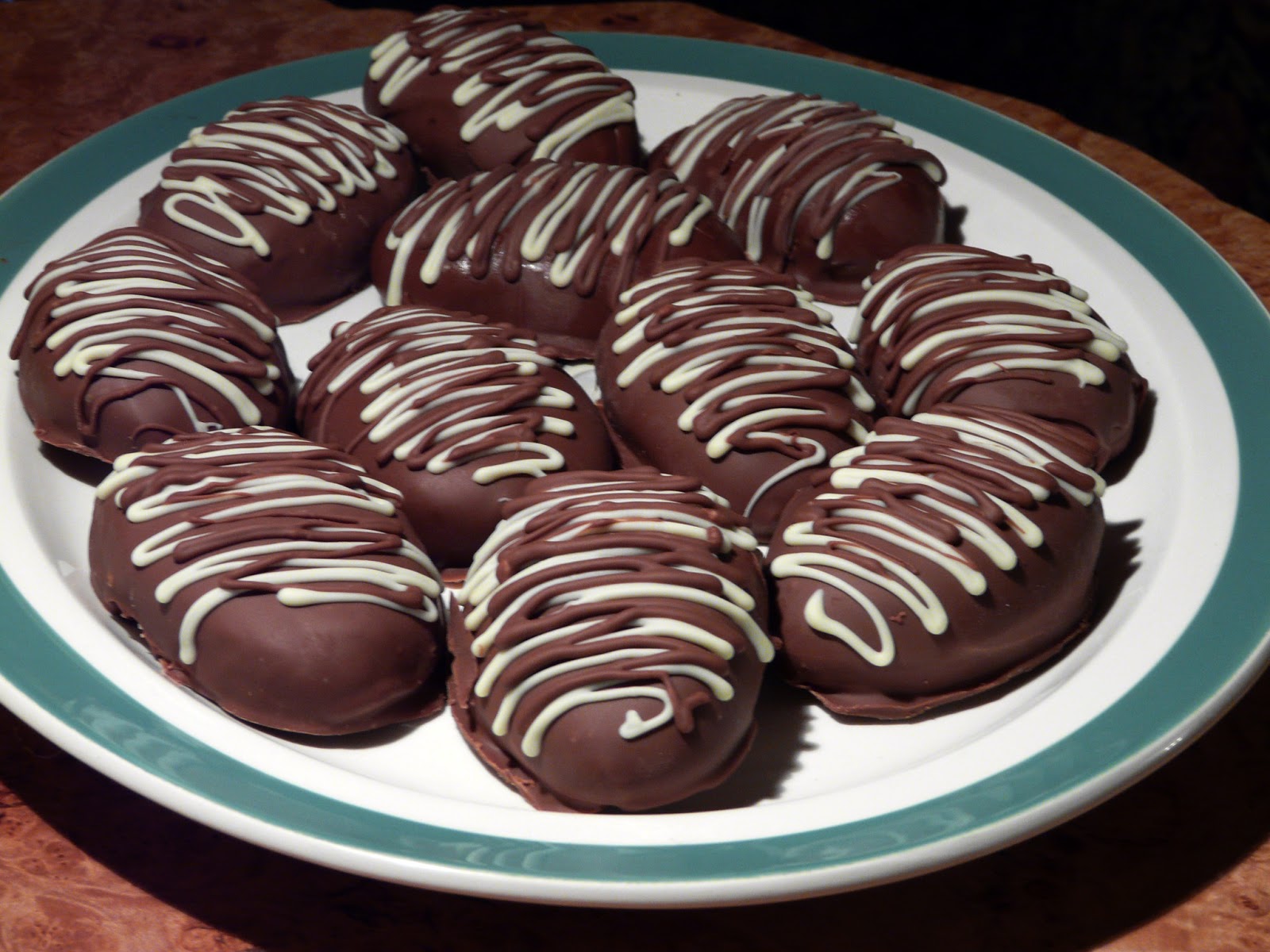 Melt chocolate. Dip each egg into melted chocolate, and place on tray lined with parchment or wax paper.
