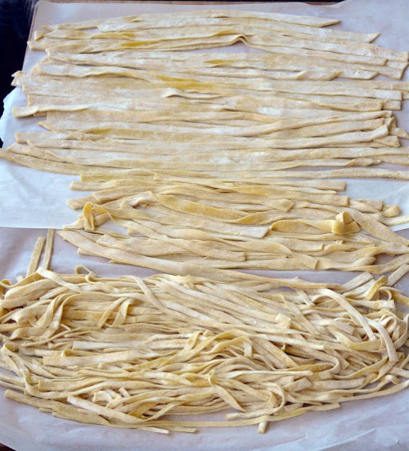 My friends mom would make 12 and 15 egg pasta at a time and give it to all of her family members (and me, a would-be family member). After she cut the pasta she would lay the strands flat. She would have it spread