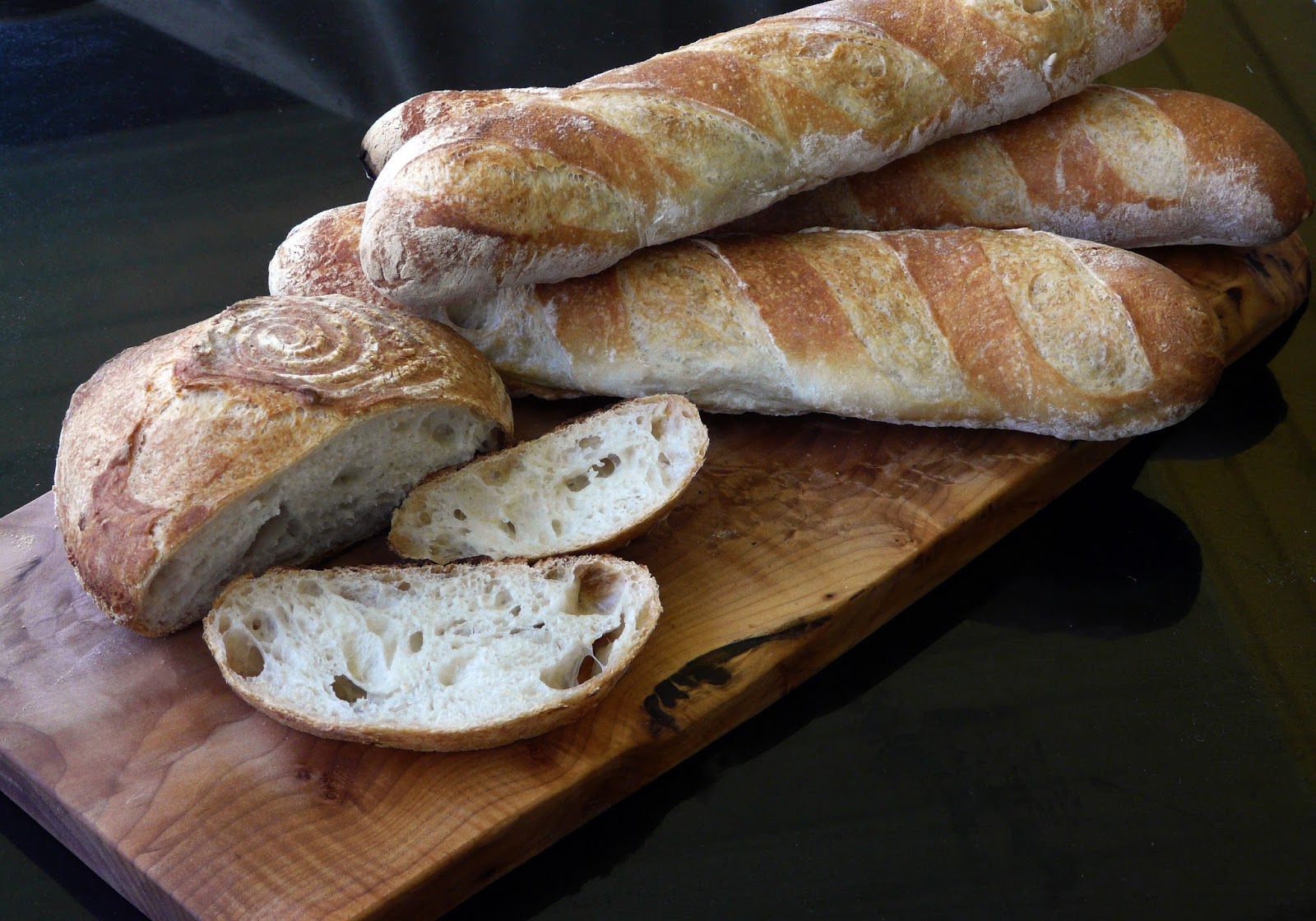 Baguettes and a round loaf.
