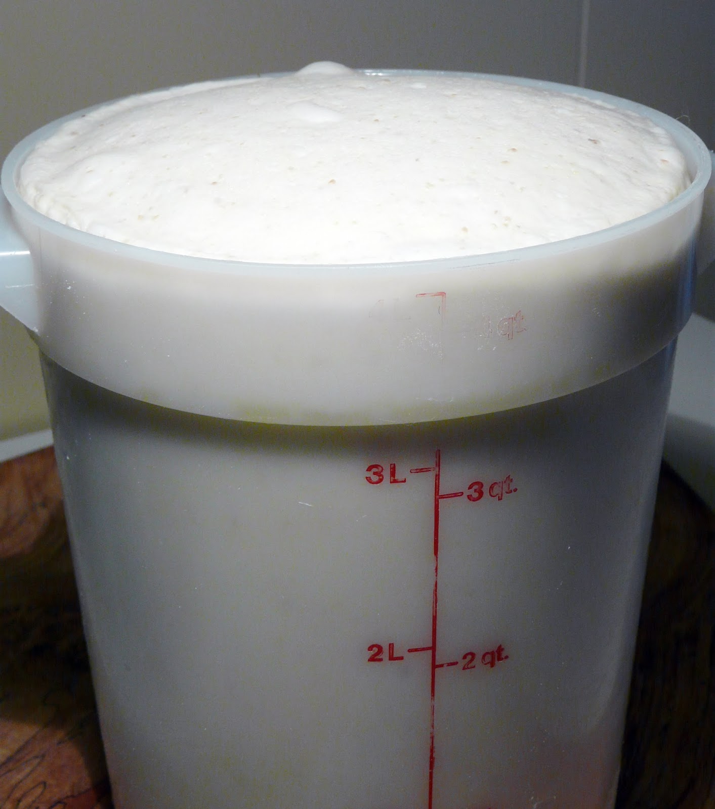 Preliminary rise – 40 to 60 minutes at around 75°F. Place the dough into a clean dry bowl, (do not grease the bowl), cover with plastic wrap, and set in a warm place free from drafts. (note the French do not grease the bowl because they believe the dough needs a seat to push up from). This first rise is sufficient when the dough has definitely started to rise and is about 1 1/2 times its original volume.