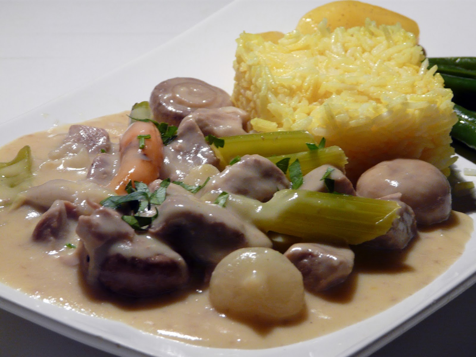 dish and keep warm. Reserve, cooking liquid, but discard the bouquet