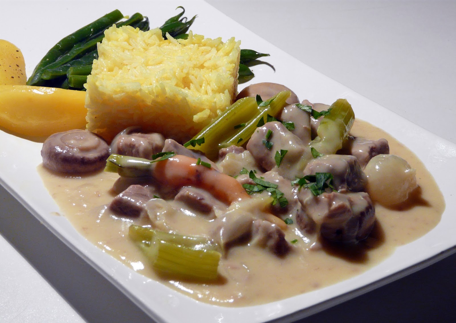 Using a slotted spoon, transfer meat and vegetables to heated serving