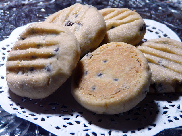 Roll into 1 inch balls. Dip fork in to white sugar and flatten cookie.