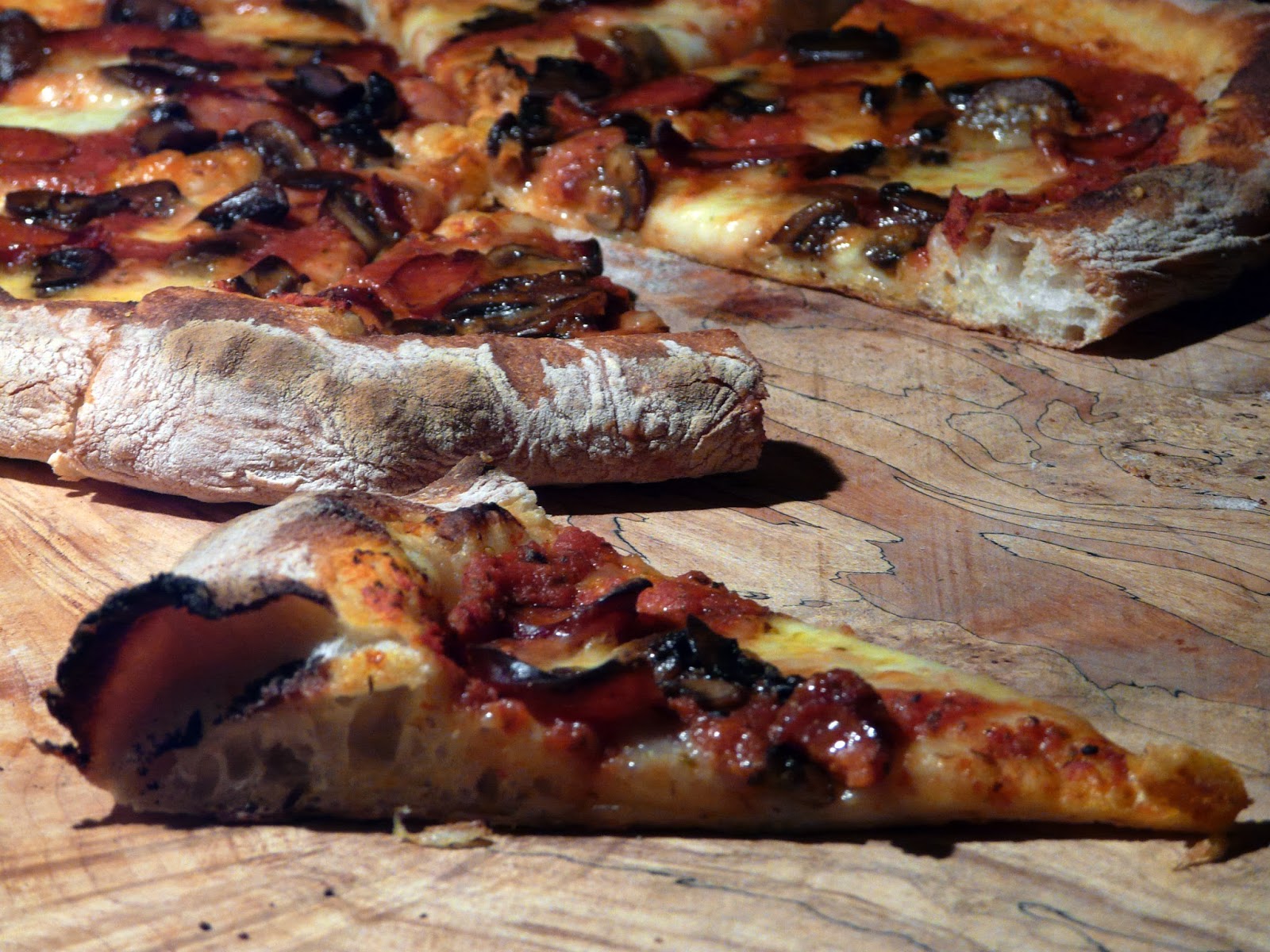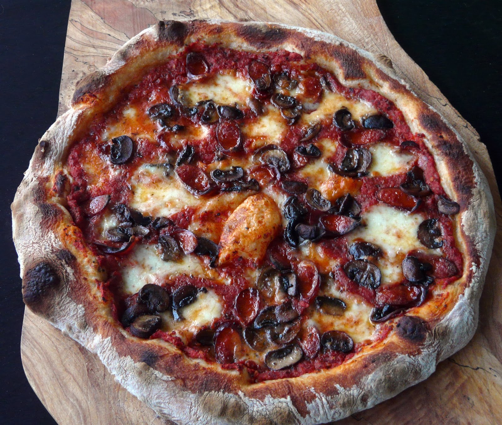 Val, that is the only thing missing. I've been trying to recreate my favourite pizza from a little pizza restaurant in Victoria. They bake in a wood fire oven. This is as close as I have been able to come baking in a regular oven. The pizza is baked on a stone, placed on a top rack about eight inches from the broiler. The oven and stone are preheated to 550°F and the pizza is baked for five to six minutes and then finished with two minutes under the broiler.~Ann