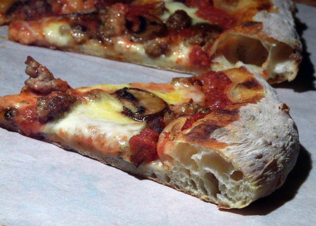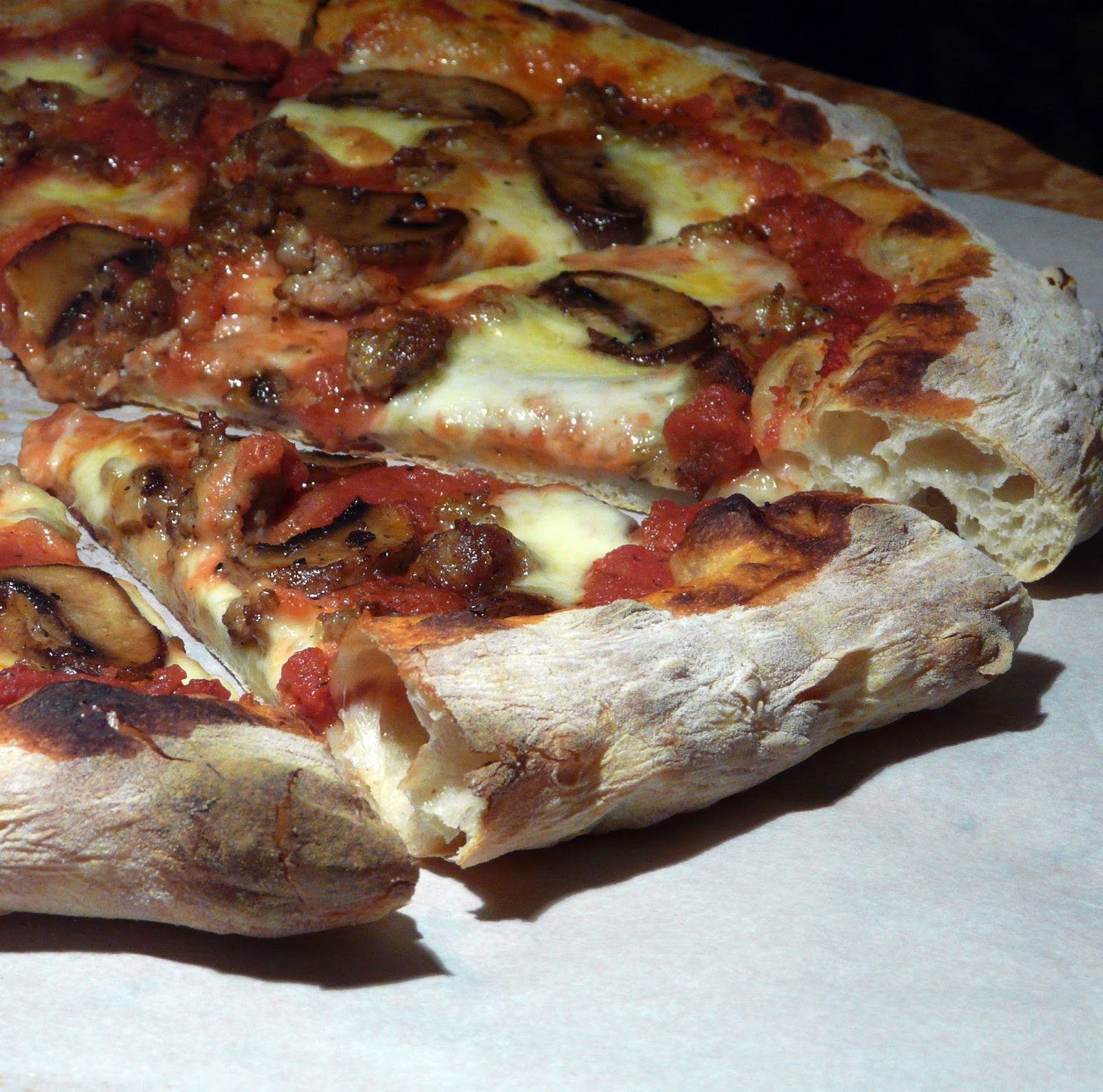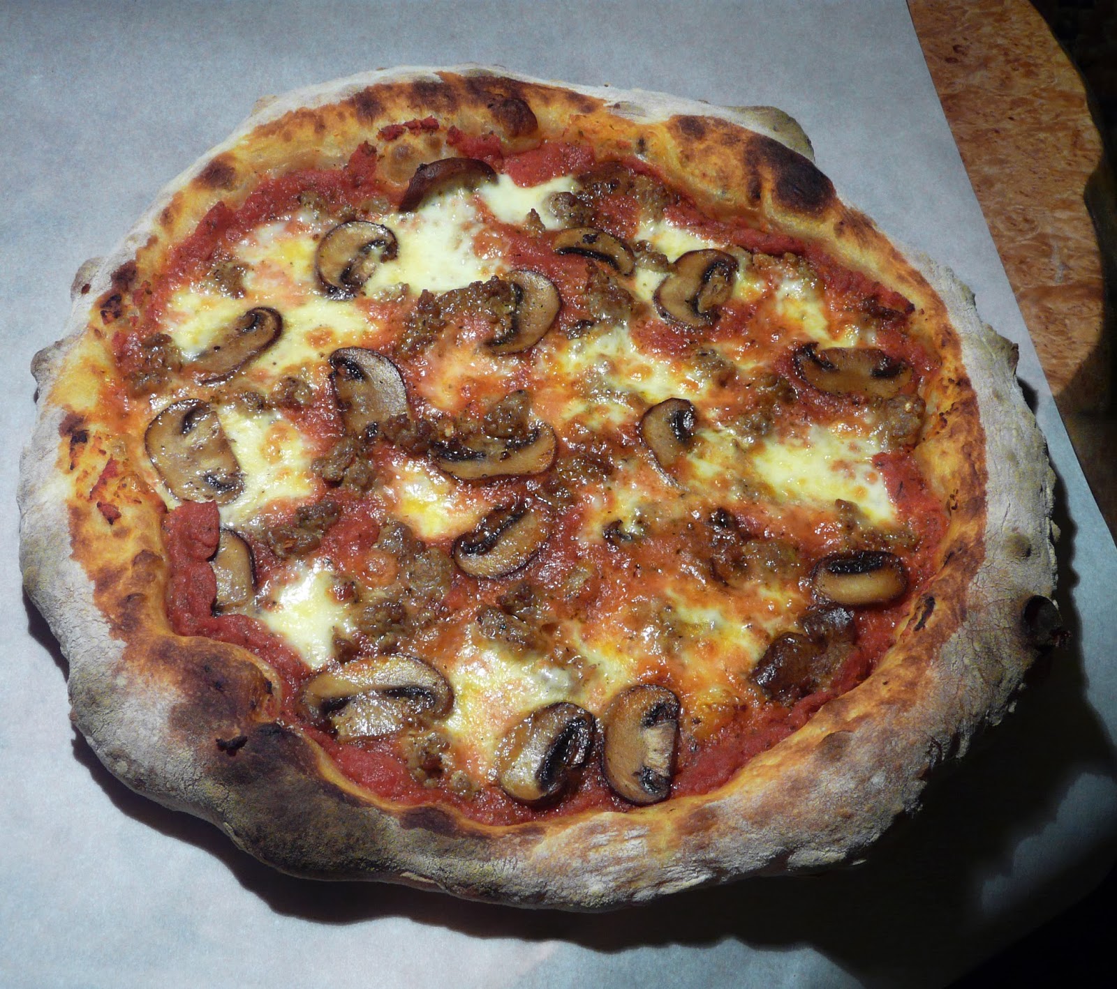 Topped with spicy Italian sausage and sauteed mushrooms.