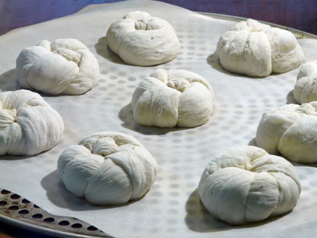 The dough went into the fridge overnight and Tuesday, I baked three