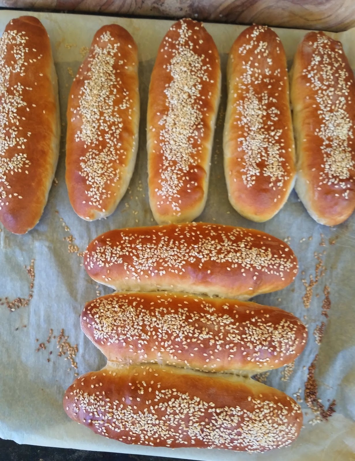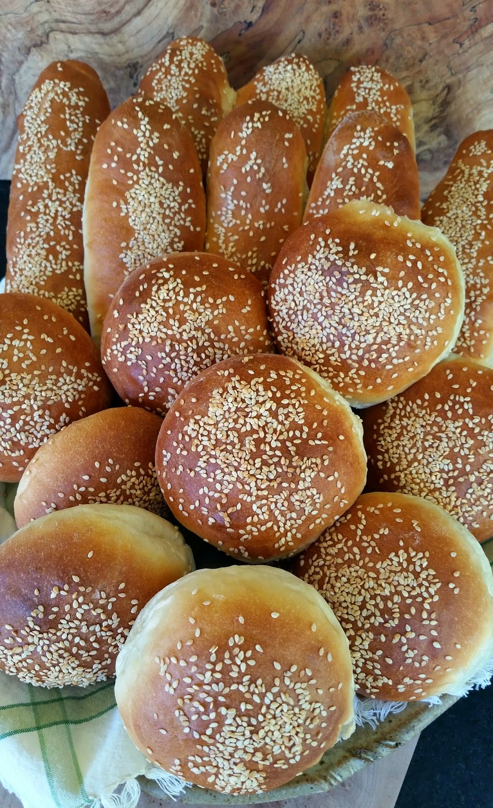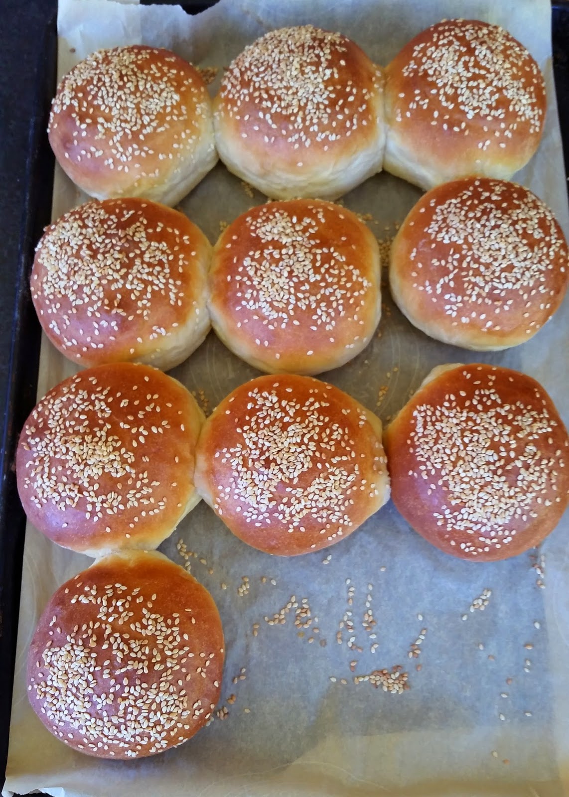 Let buns rise until almost doubled. Brush with egg white mixed with a little water, sprinkle with sesame or poppy seeds and bake in a 425°F oven until golden brown.