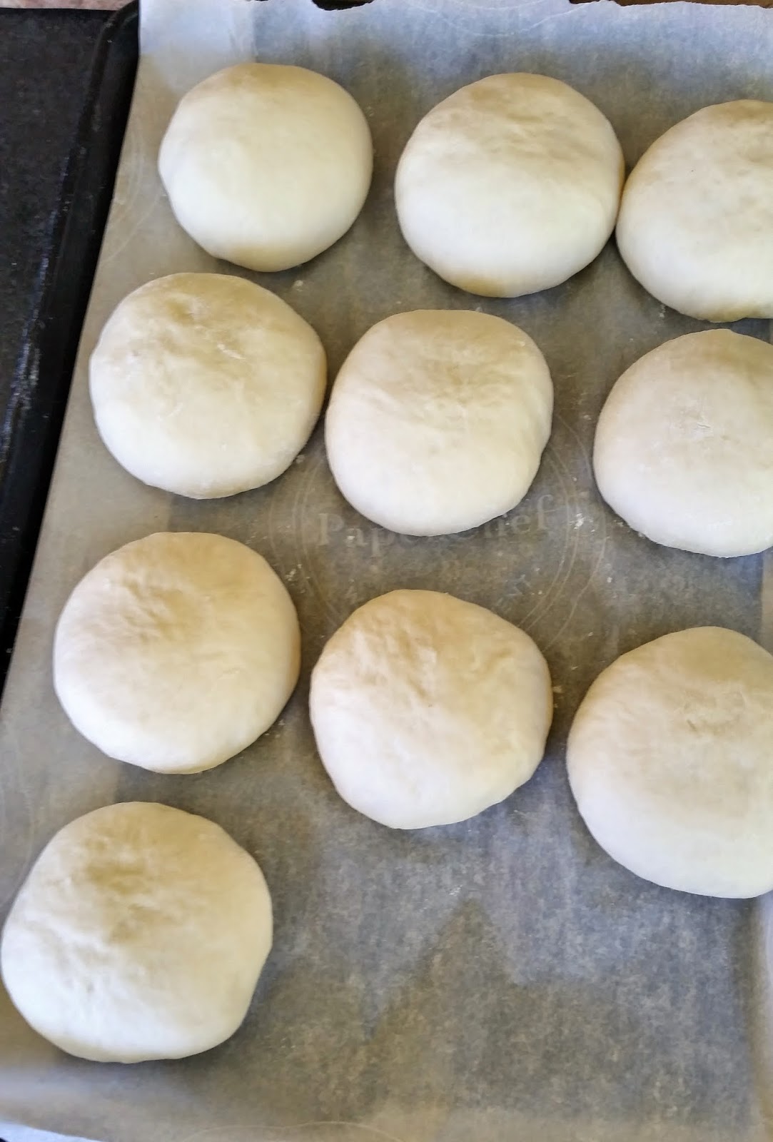 Knock down. Cut dough into equal portions approx. 95g to 100 g each for burger buns and 120 g for hot dog buns.