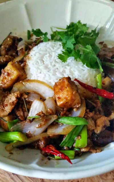 Pork Tenderloin with Eggplant and Tofu.