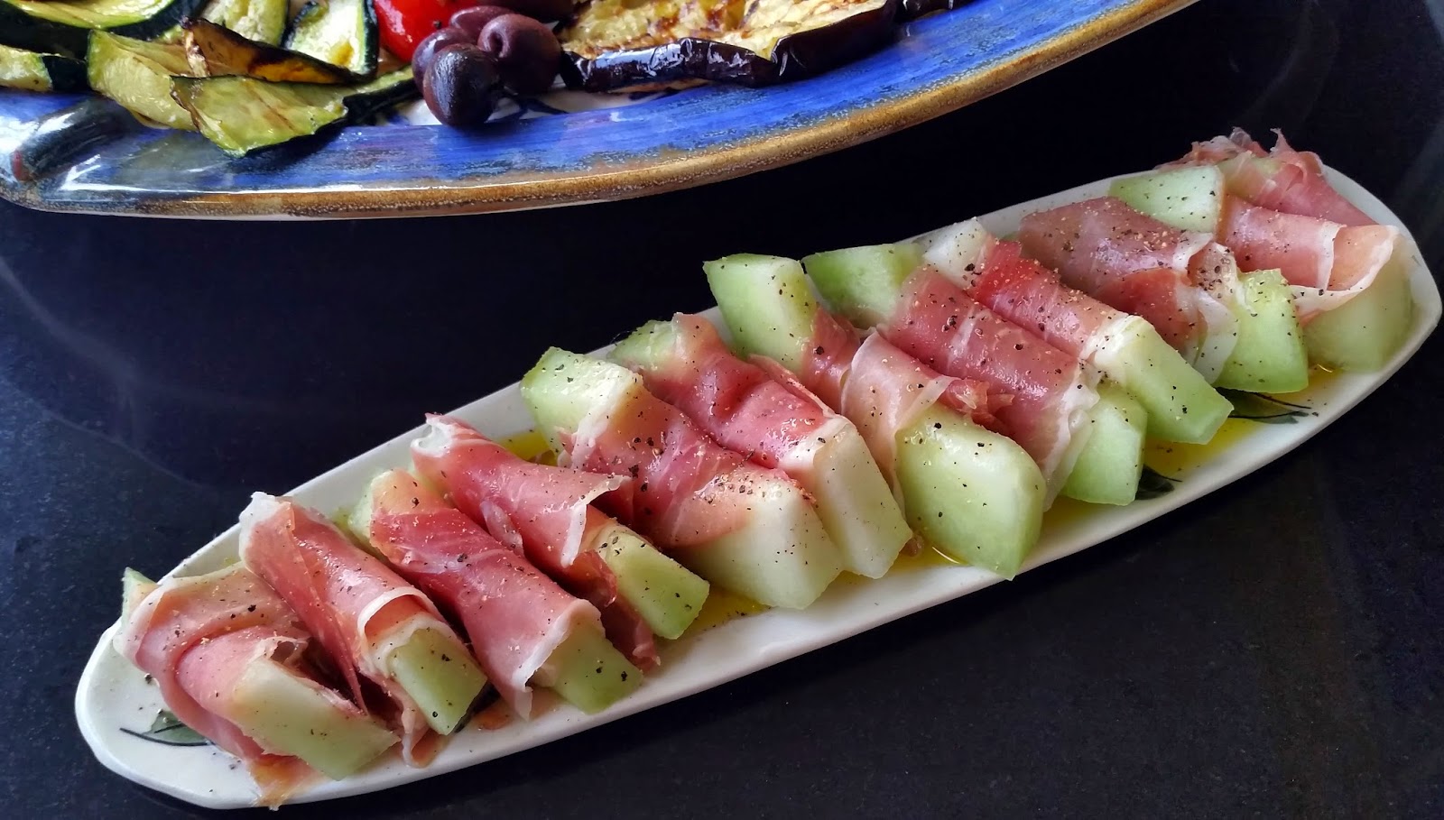 wrapped in prosciutto and drizzled with olive oil and fresh ground pepper.