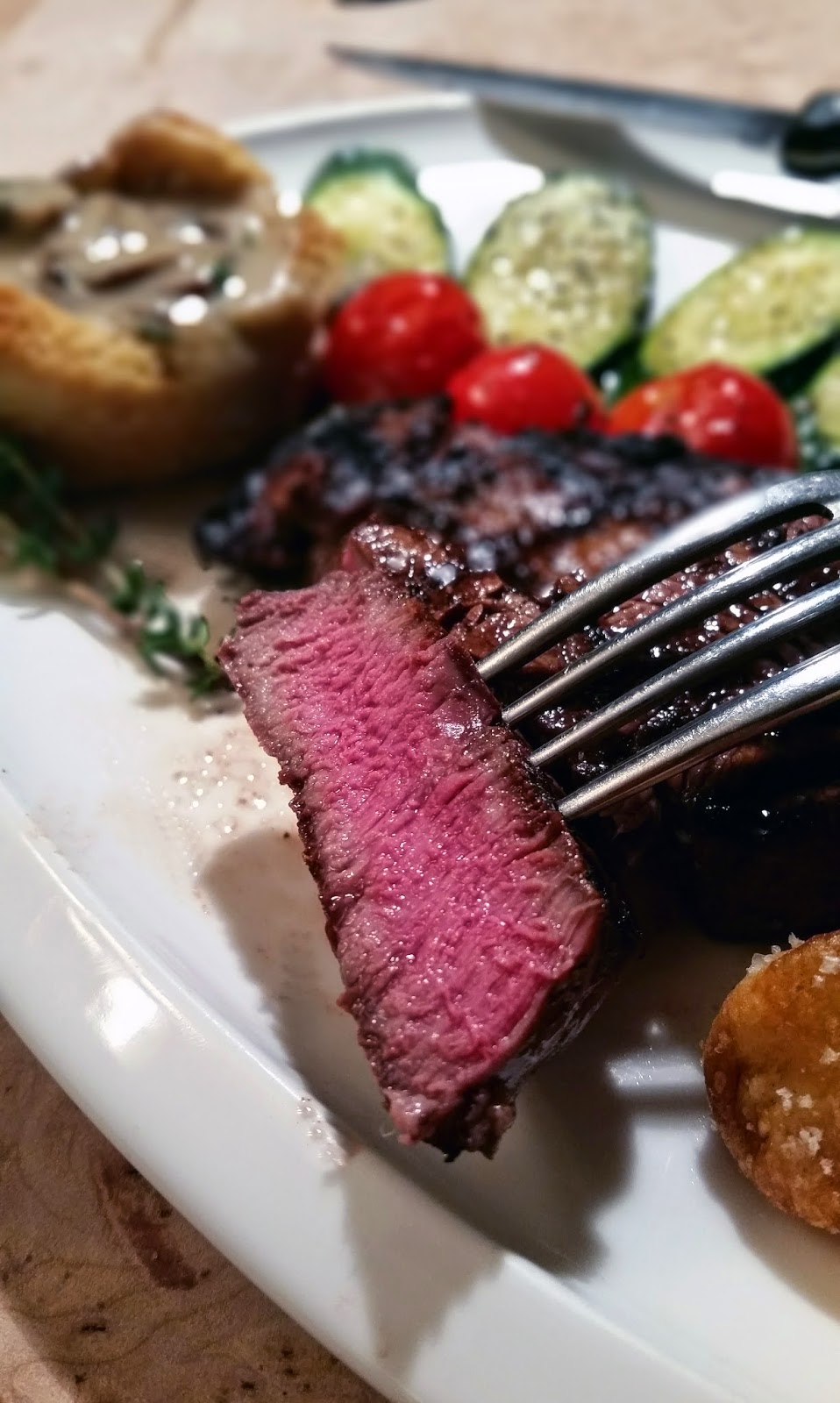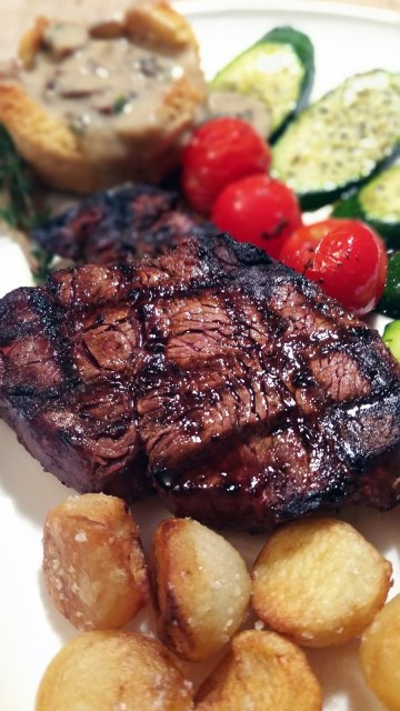 That is one great meal and the steak looks perfect.