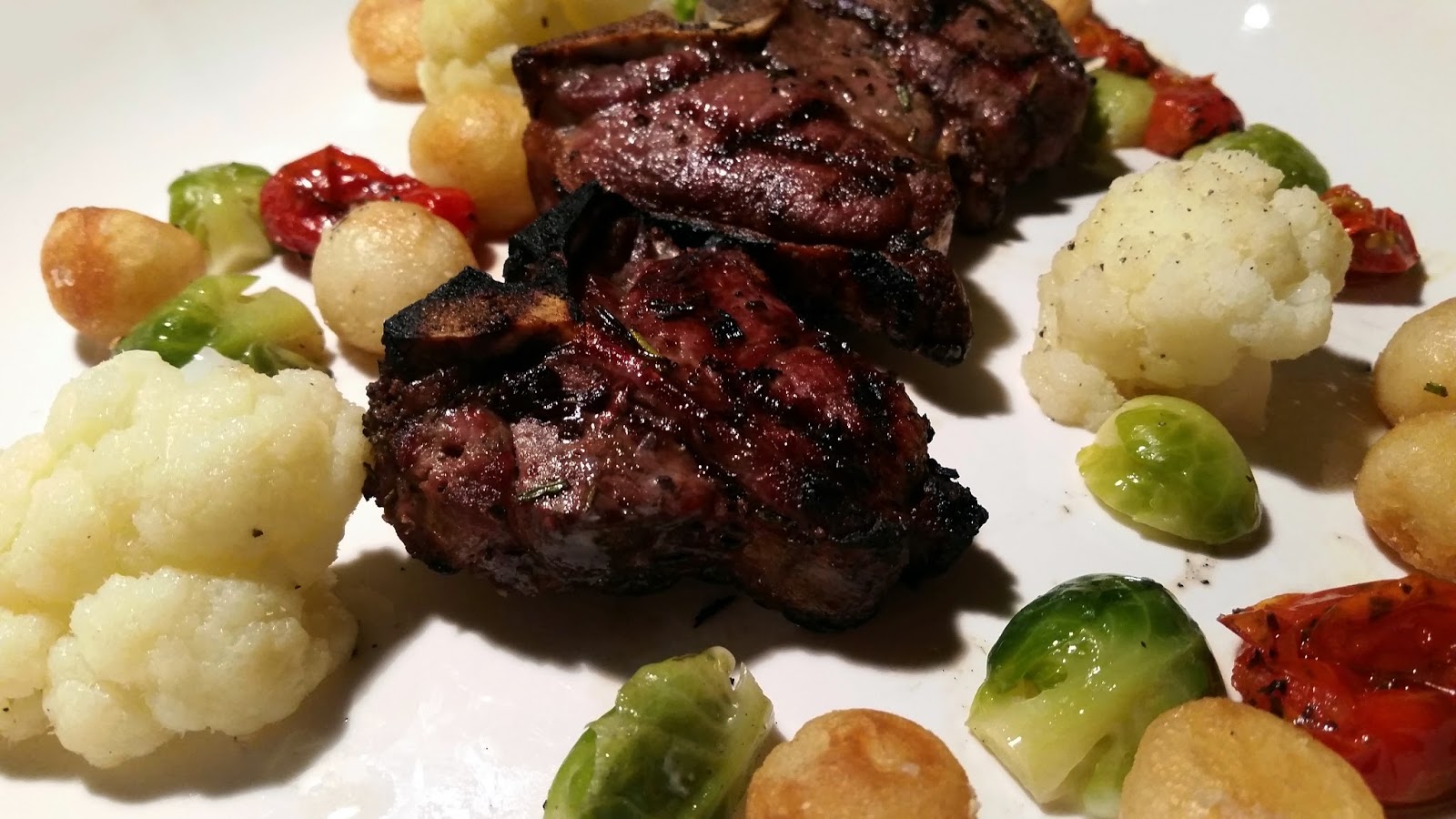 with Parisienne Potatoes and Cauliflower, Brussels Sprouts
