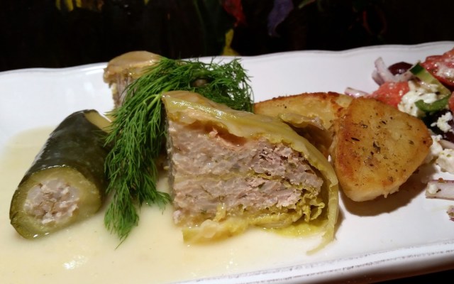 The cabbage rolls and zucchini were served with an Avgolemono Sauce.