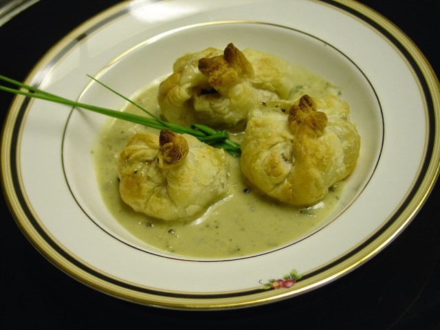 Fill each croustade with 1 or 2 escargot and some of the sauce.