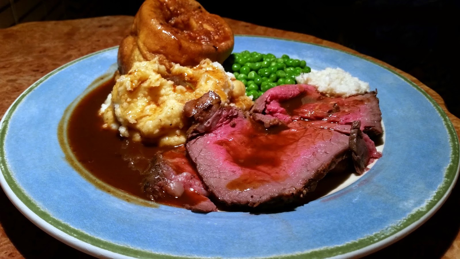Roast Beef with Yorkshire Puddings and homeamde horseradish.