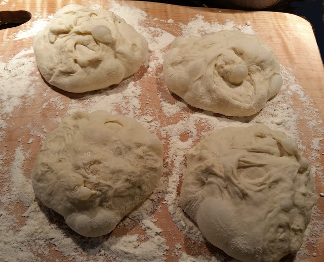 Using a Bench/Dough/Pastry cutter, divide the dough.