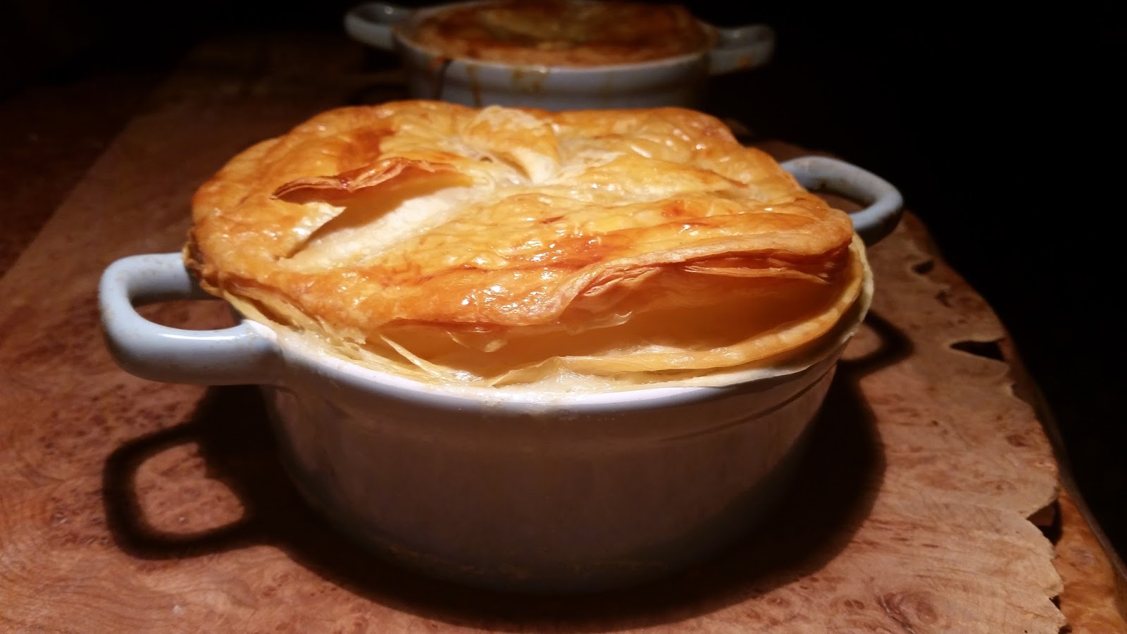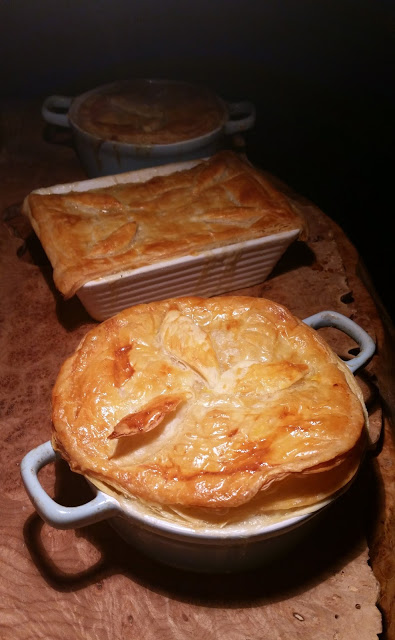 Spoon filling into the pan. Cover with pastry, trucking in edge to