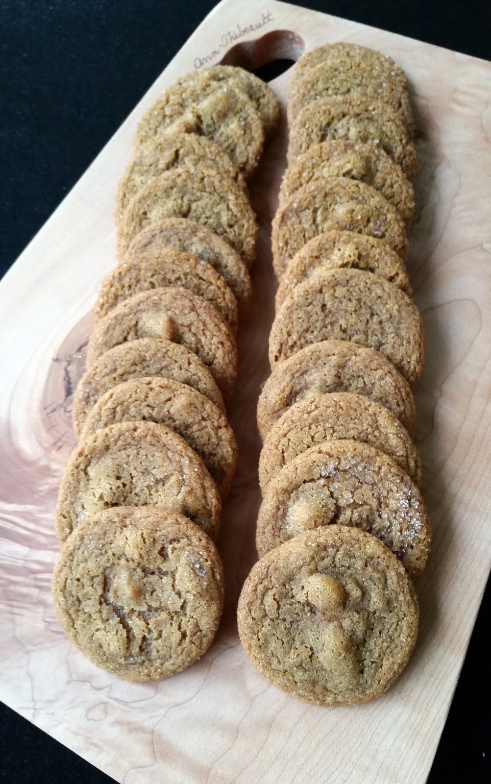 Another 'keeper' recipe. I made these this morning with the candied ginger. I have to admit I got part of them a bit darker because my dear husband likes his cookies almost burned.We had ours with coffee.