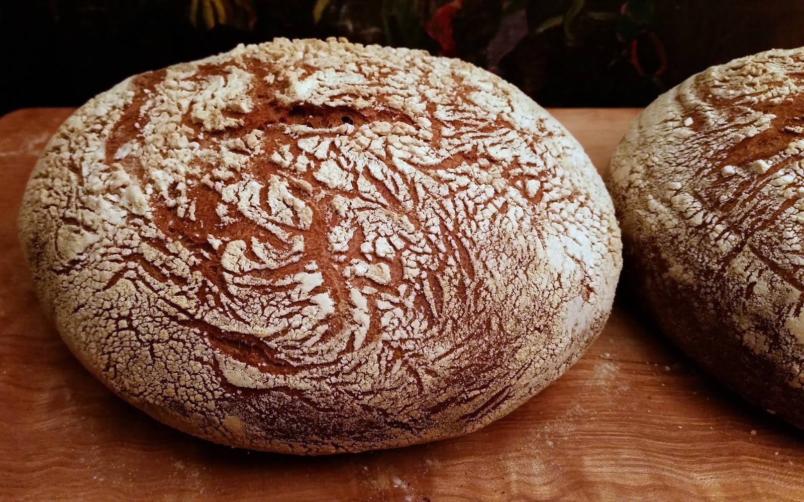 Bake in a preheated 500°F oven for 20 to 25 minutes. Spray loaves and add some steam by tossing some water into a pan in the