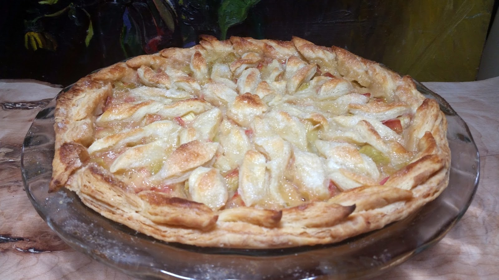 Roll out remaining pastry and cut into strips. (or cut leaves). Weave pastry