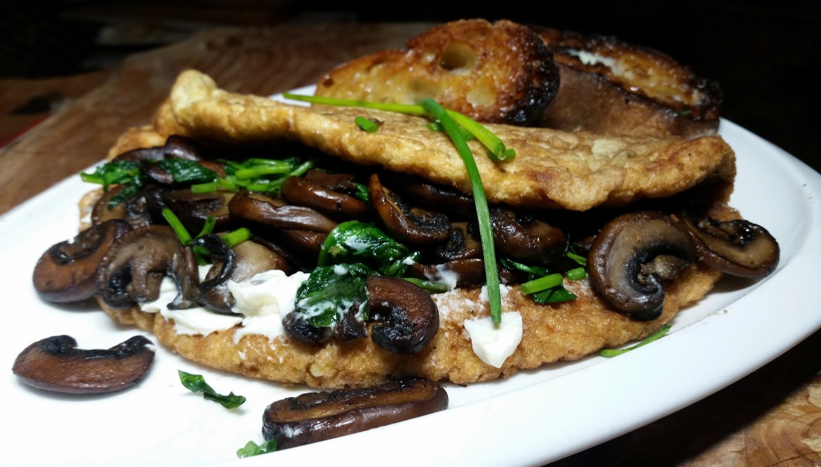 Oven baked omelette with cream cheese, mushrooms and spinach.